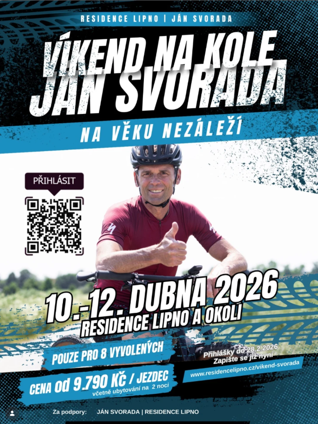 Legendární víkend na Lipně: Staňte se jedním z 8 vyvolených Chcete zažít cyklistiku v její nejčistší podobě a po boku skutečné legendy? Máme pro vás pozvánku, která se neodmítá. V termínu 10. – 12. dubna 2026 otevírá Residence Lipno své brány pro skupinu pouhých osmi jezdců, kteří prožijí nezapomenutelný víkend v doprovodu Jána Svorady.